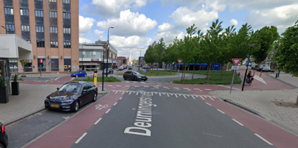 De kruising met de auto’s op de rijbaan zorgen voor onveilige situaties. Soms staan auto’s op het geblokkeerde wegblok (met kruis daarop) waardoor fietsers tussen de auto’s door moeten manoevreren.